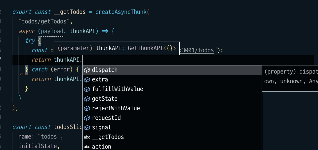 툴킷에서는 createAsyncThunk라는 API를 사용해서 thunk함수를 생성할 수 있습니다.