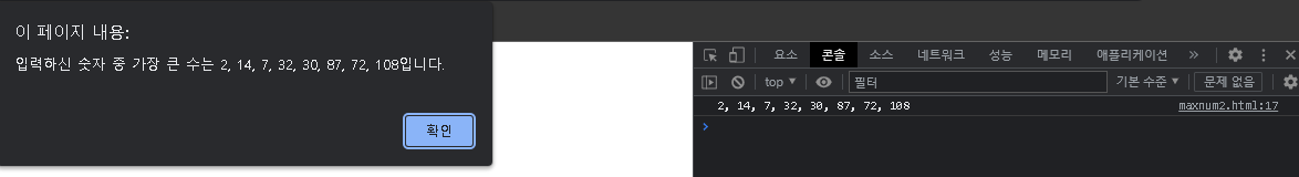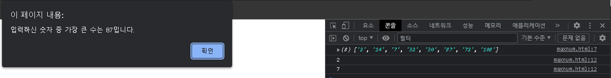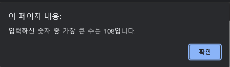 alert(`입력하신 숫자 중 가장 큰 수는 ${max(testArray)}입니다.`)