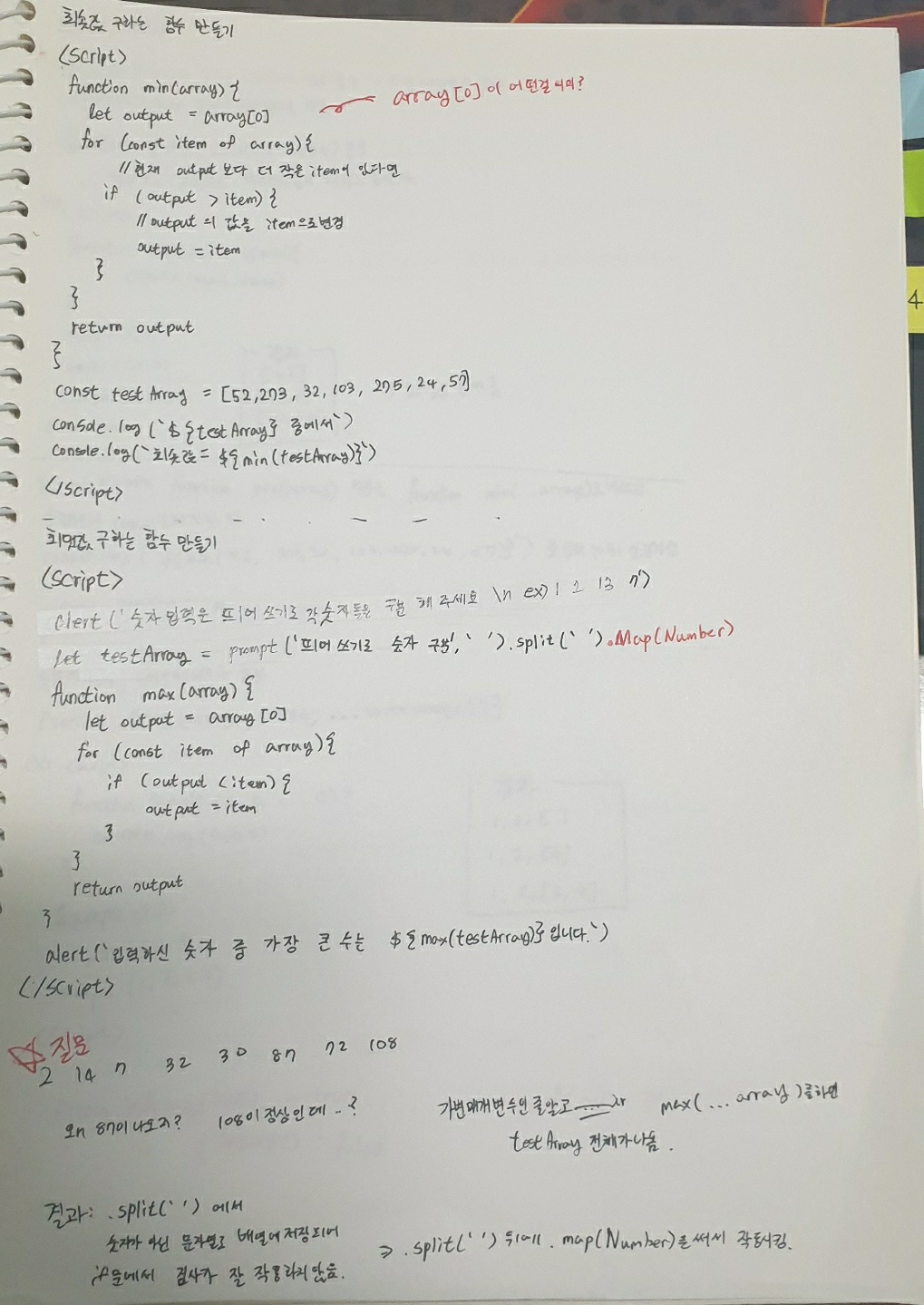 console.log를 이용하여 배열의 값을 나타내기도하였고, output의 값을 나타내기도하였다.