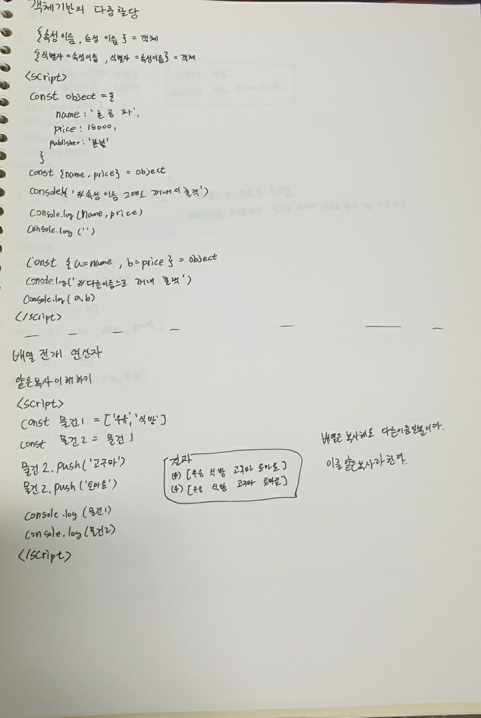 깊은 복사는 const를 이용하고, ...을 사용하여 전개형식으로 배열 혹은 객체를 복사해온다.