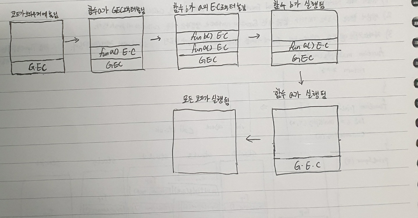 : 자바스크립트 엔진은 함수가 호출될 때마다 호출된 함수를 위한 Excution context를 생성한다.