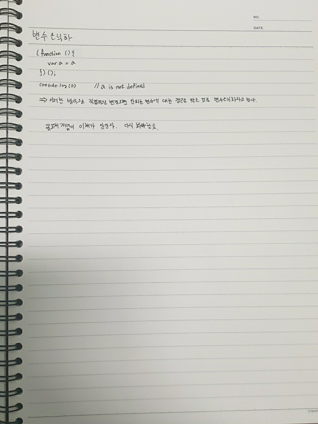 단순하게 설명하자면 var로 선언된 변수들은 코드가 실행될 때 undefined라는 값을 미리 할당받고,