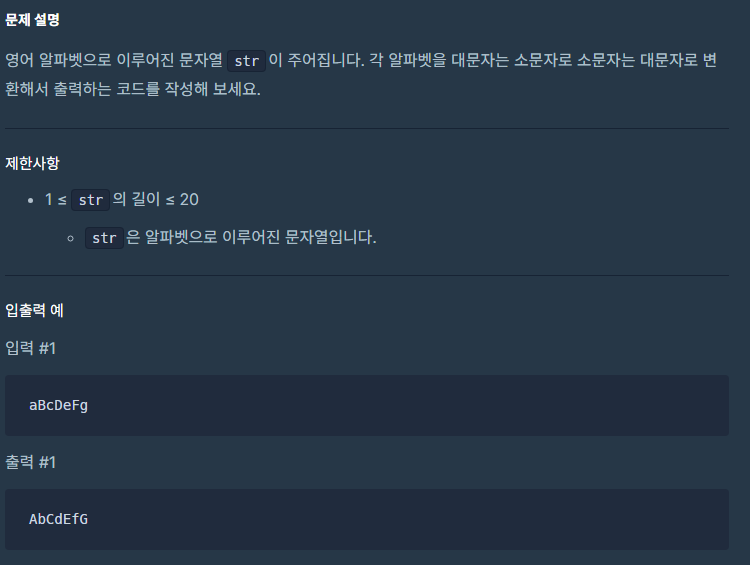 반복문과 조건문을 사용하여 문자열의 인덱스마다 대소문자를 구분하고 상황에 맞게 바꾸도록 만들었다.