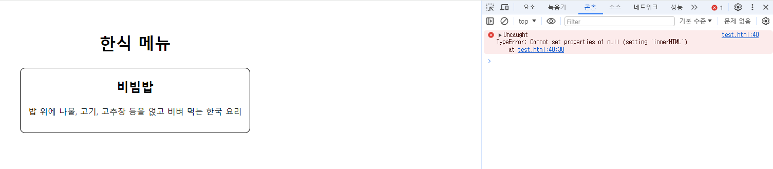 [JS] (err) TypeError: Cannot set properties of null (setting 'innerHTML')