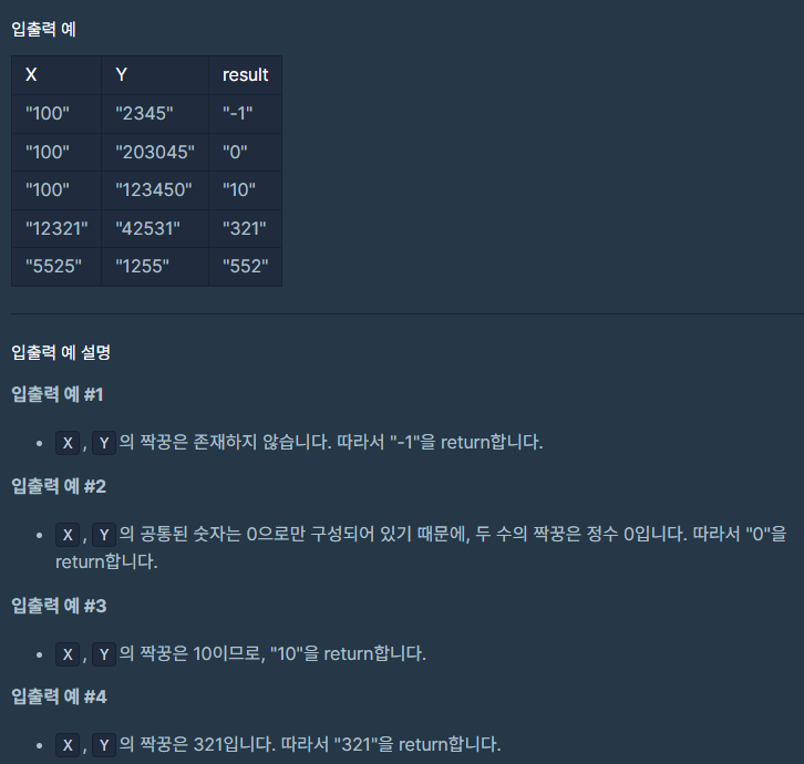 반복문으로 0~9까지 추가가 완료된 후 먼저 빈문자열인지 판단하여 -1을 리턴하고, 0인경우 0을 리턴한다.