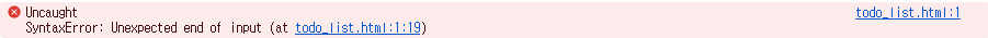 Uncaught SyntaxError: Unexpected end of input에러는 괄호를 닫지 않거나 따옴표를 제대로 닫지 않아 오류가 발생하는 것 이었다.