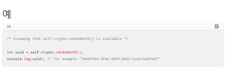 슬랙을 통해 튜터님께 질문드린 결과 crypto.randomUUID를 사용해보라고 추천해주셨다.