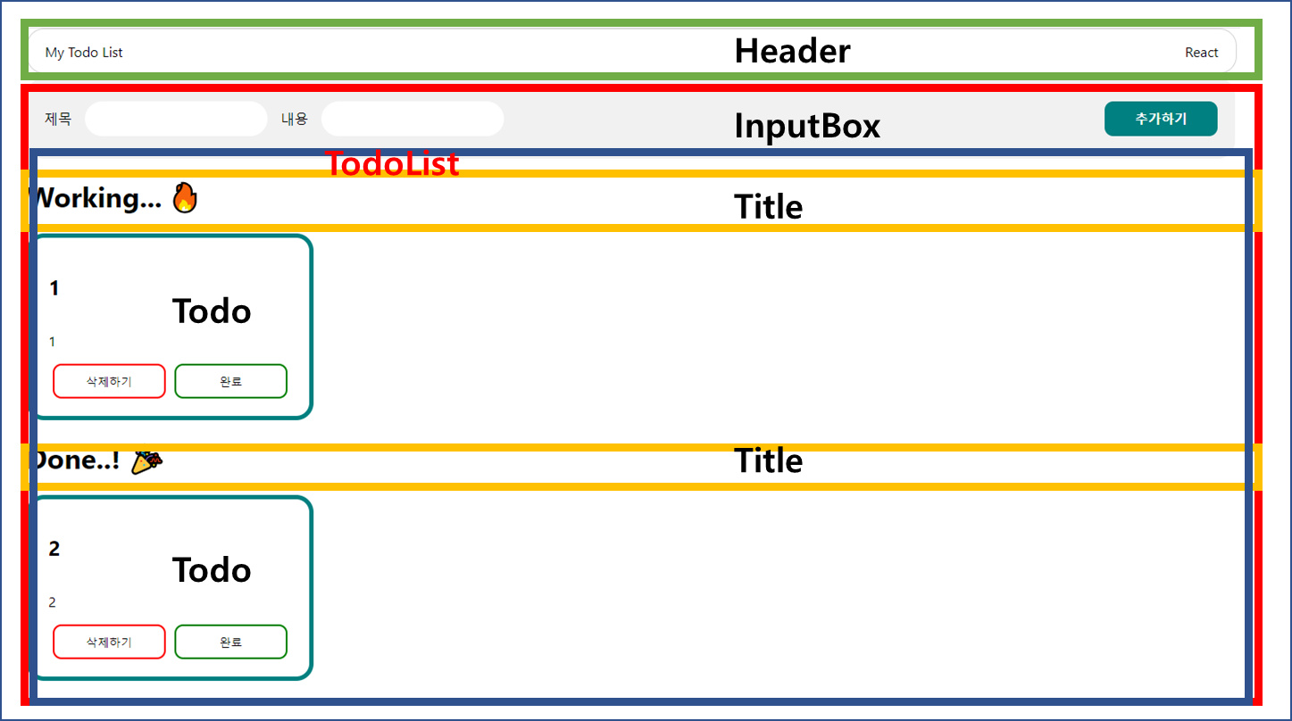 이렇게 한 이유는 기능적인 부분에서 나왔다. InputBox에서 Todo를 추가하면 해당 TodoList 배열 변화가 아래 TodoList 컴포넌트에도 전달되어야한다.