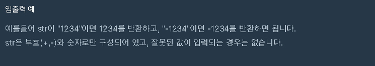 | 문자열 s를 숫자로 변환한 결과를 반환하는 함수, solution을 완성하세요. |