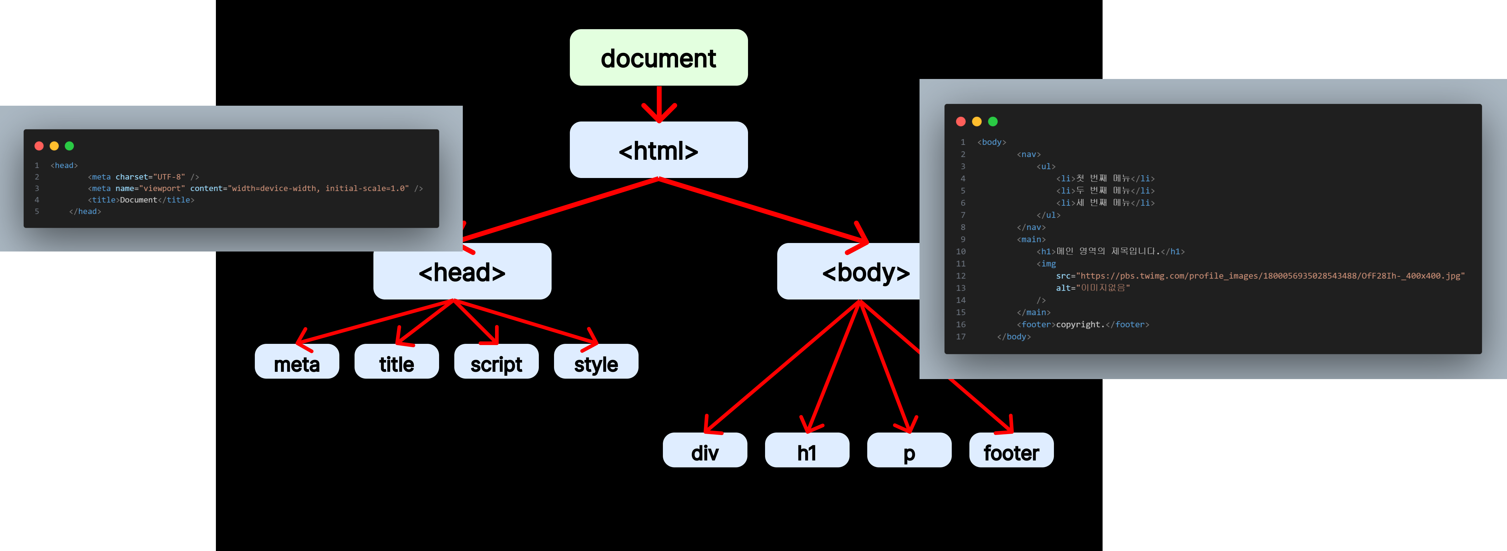 - 브라우저가 HTML 파일을 해석(parsing 파싱)