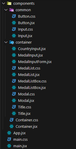 - 사용자가 입력하는 값, 또는 이미 입력된 값, 메달 정보와 같은 애플리케이션의 상태를 관리하기(추가, 변경, 삭제) 위해 리액트의 어떤 기능을 사용하셨나요?