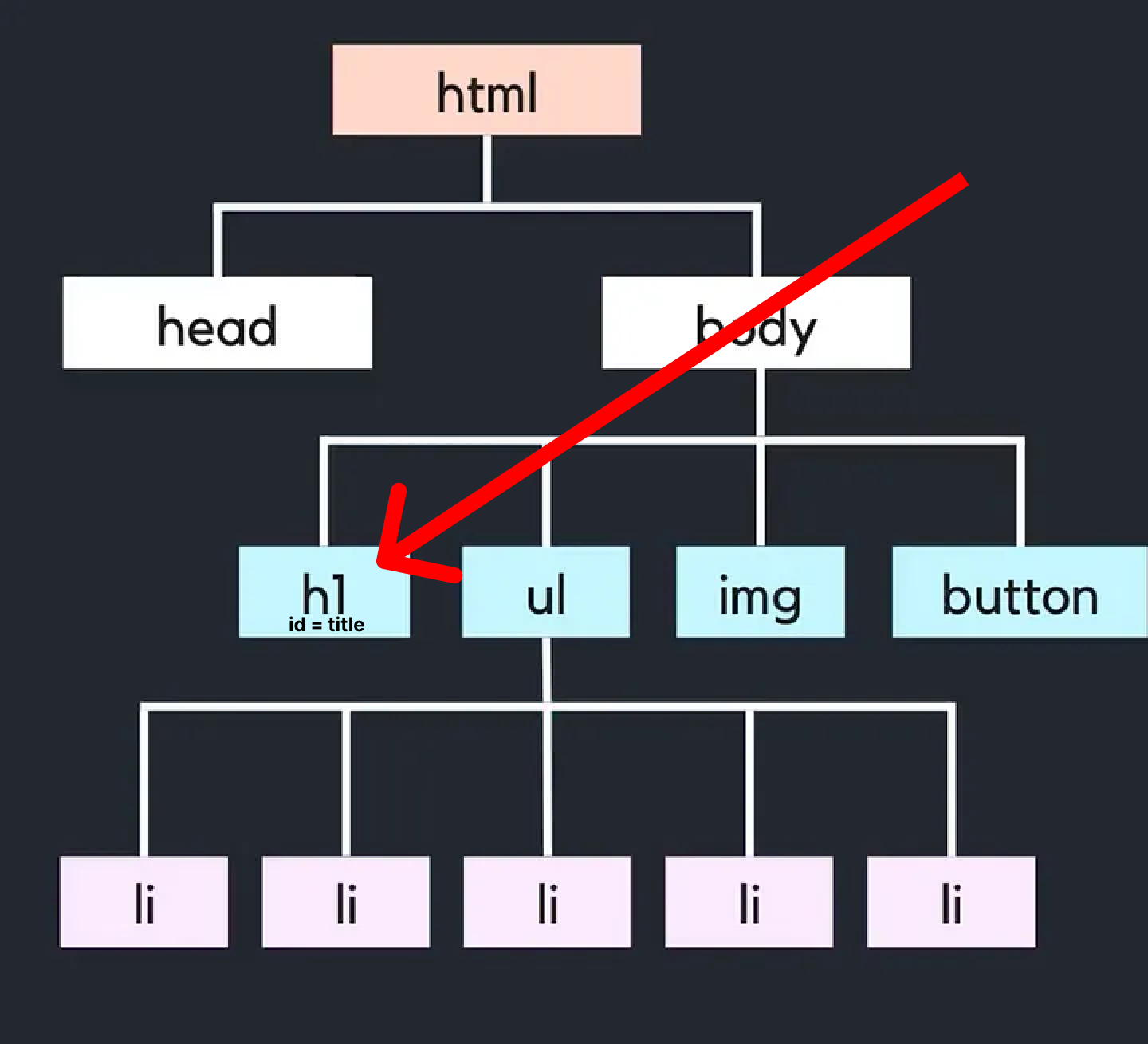 예를들어 우리가 바닐라 자바스크립트에서 id가 title인 저 h1태그에 접근하여 style값을 변경한다고 가정해보자.