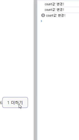 count값을 의존성 배열로 가진 useEffect가 count가 변화할때마다 콜백함수를 실행하는 것을 볼 수 있다.