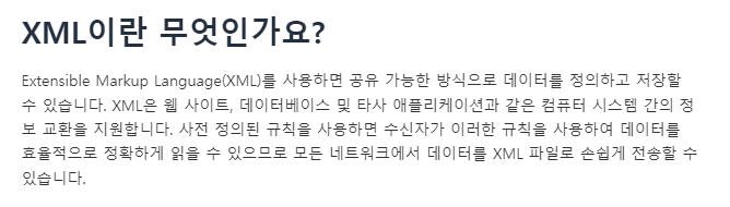 XML, extensible markup language는 AWS에서 다음과 같이 말한다.