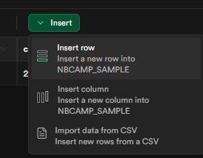 생성된 테이블에서 상단 Insert, Insert row를 눌러주면