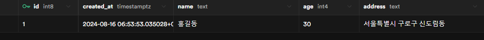 생성된 테이블에서 상단 Insert, Insert row를 눌러주면