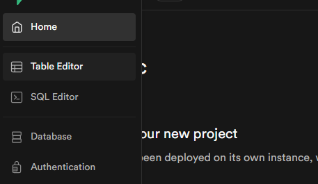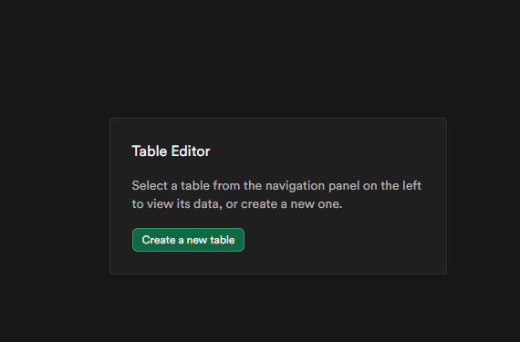 해당 프로젝트가 생성된 뒤 Table Editor을 누른다.