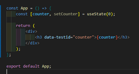 하지만 또 에러가 발생한다. 우리가 testid가 counter인 요소를 선택했지만, 현재 코드로는