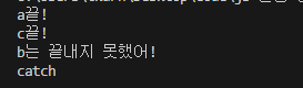 mdn에 애매하게 설명해둔 설명대로라면 모두 실행되지않고 b가 실패해 b는 끝내지 못했어! 만 출력될 것 같지만