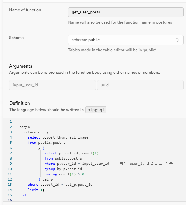 gpt는 테이블 구조를 이해못하고 supabase ai는 아직 좀 부족해서 해결을 못해주었다.