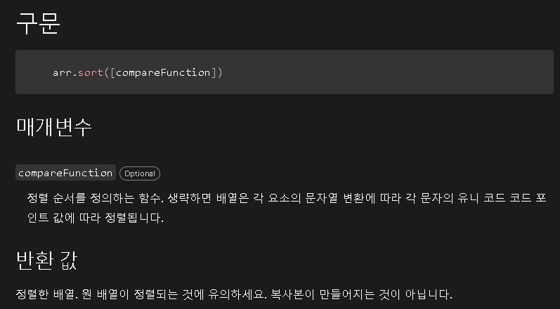 (sort()에 값을 넣지 않으면 유니코드 포인트값에 따라 정렬함)