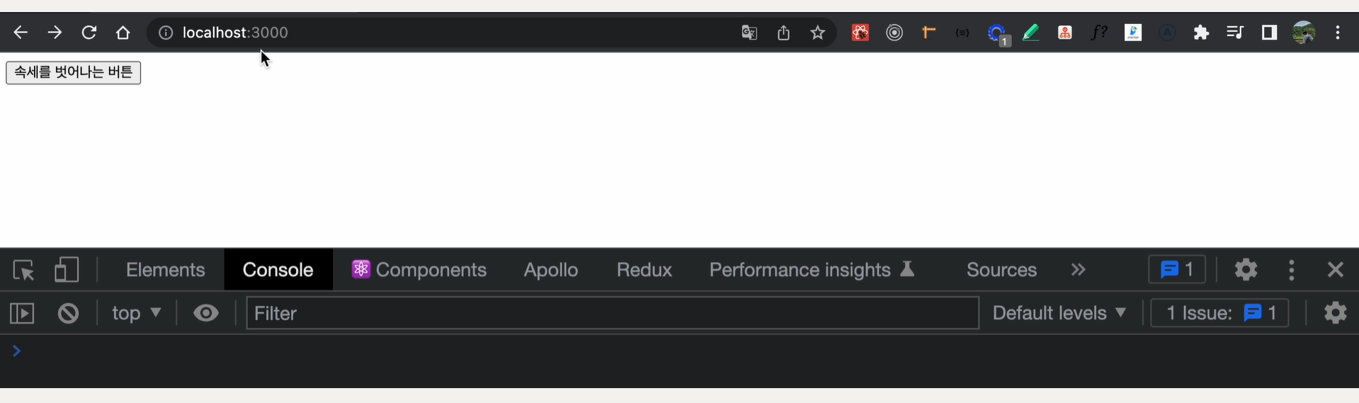 브라우저에서 우리가 App컴포넌트를 눈으로 보는 순간, 즉 App컴포넌트가 렌더링될때 useEffect안에 있는 console.log가 실행된다.